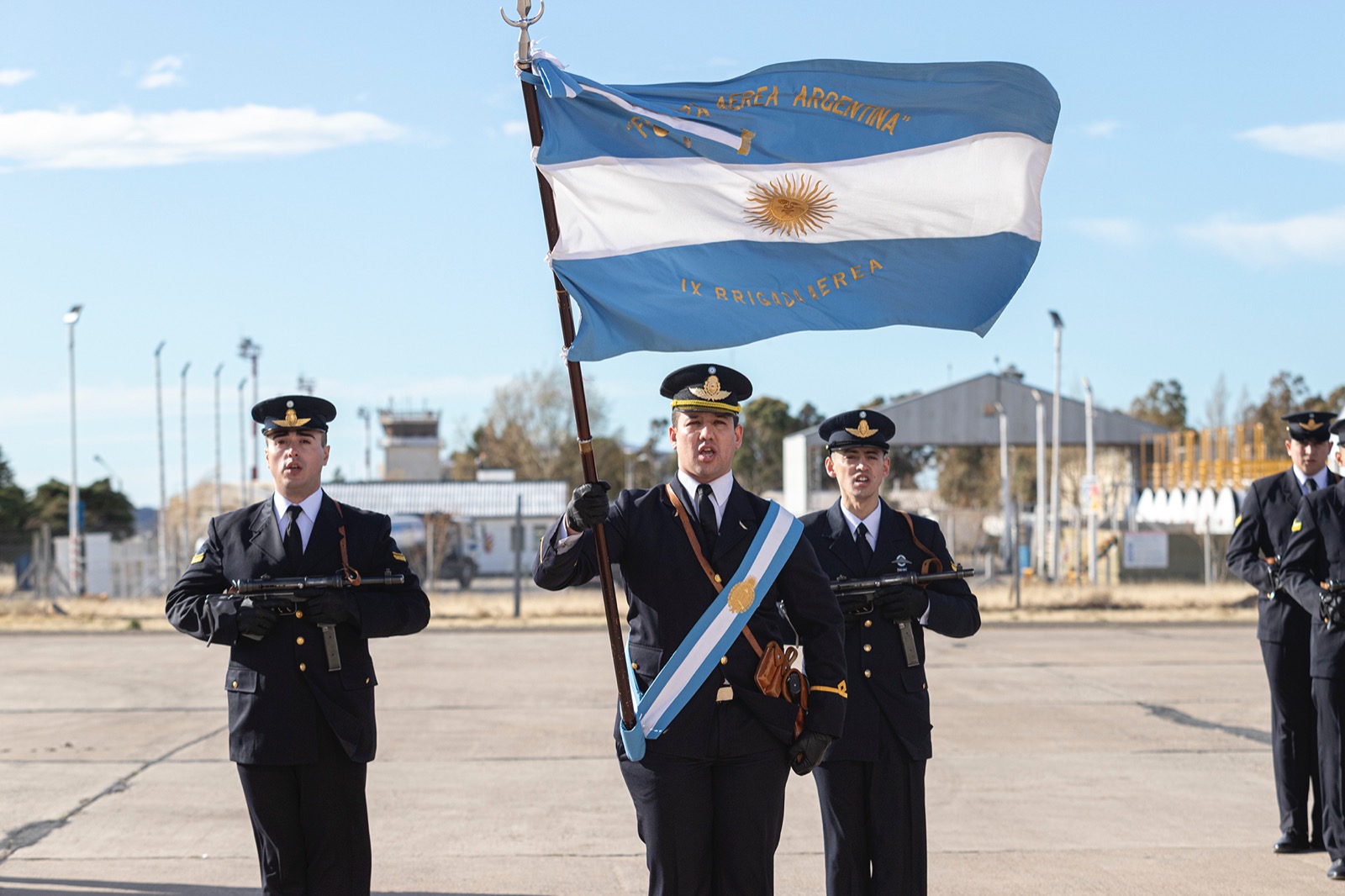 Por su parte el Jefe de la Guarnición Aérea, Gustavo Aníbal Henríquez relató parte de la historia de la Fuerza Aérea: “Nos convocamos para festejar el Día de la Fuerza Aérea Argentina, fecha que evoca la creación de la primera Escuela de Aviación Militar en el año 1912 en el campo histórico del Palomar, provincia de Buenos Aires, cuna de la Aviación Militar Argentina y actual primera Brigada Aérea”.