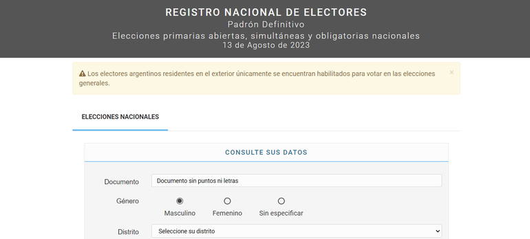 Este padrón electoral se aplicará para las Elecciones Primarias Abiertas, Simultáneas y Obligatorias (PASO) nacionales del 13 de agosto de 202.